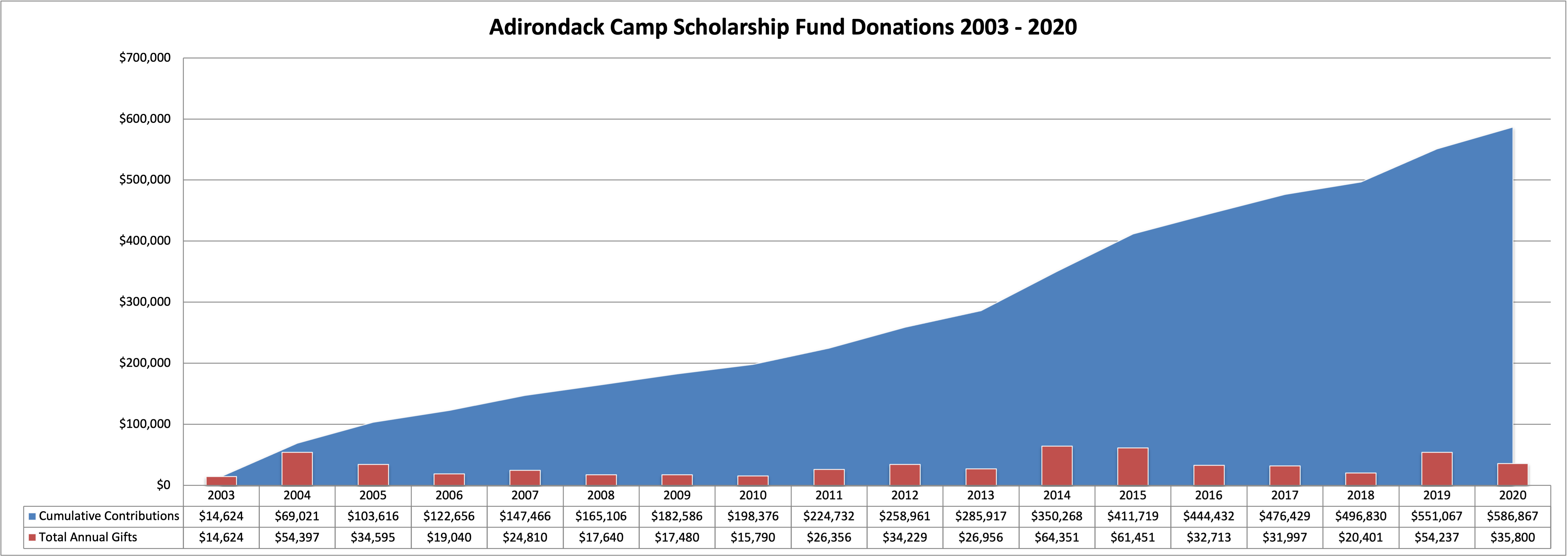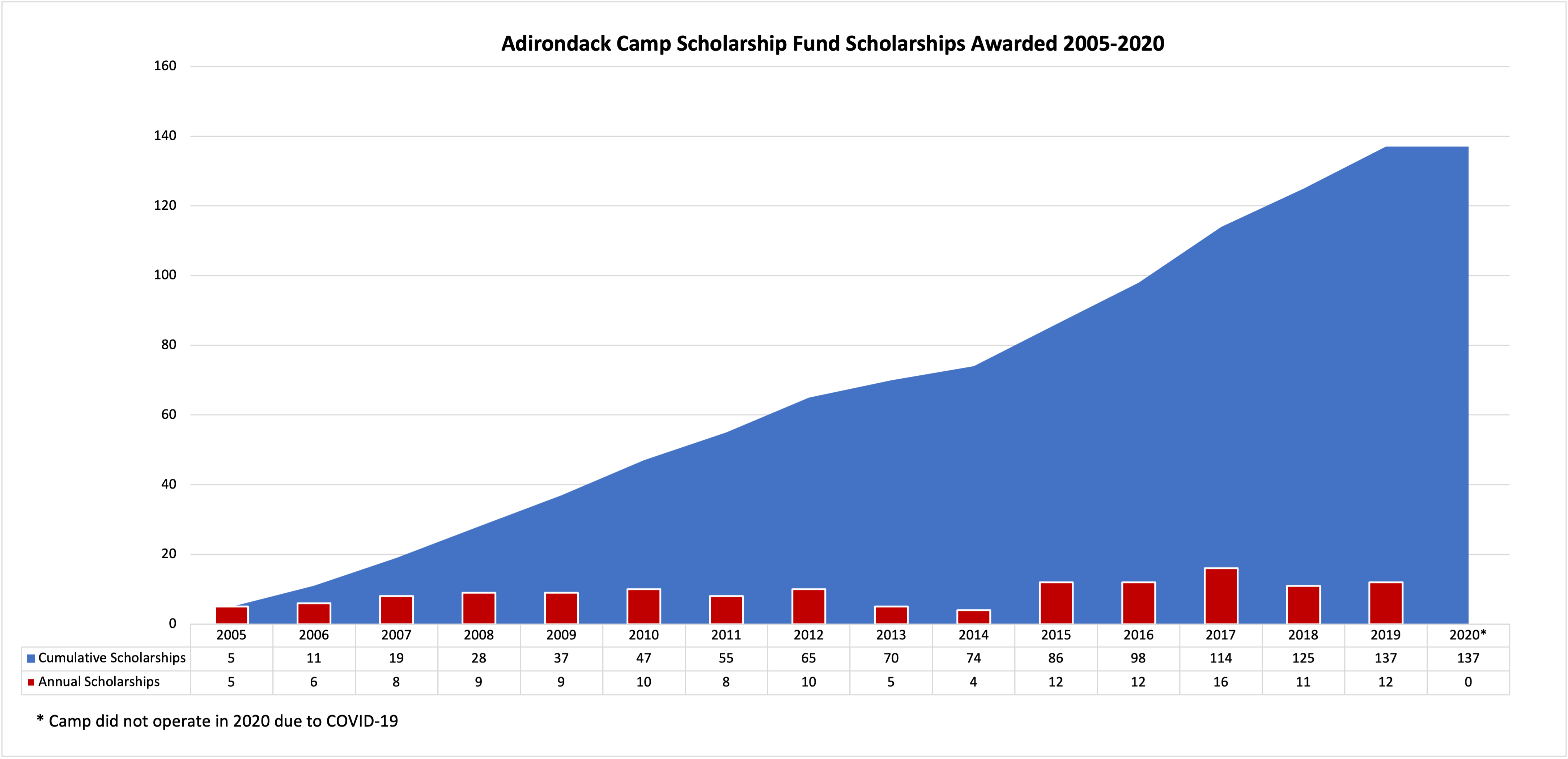 To date, over 135 scholarships have been awarded, allowing over 100 children to benefit from summers at Adirondack Camp!